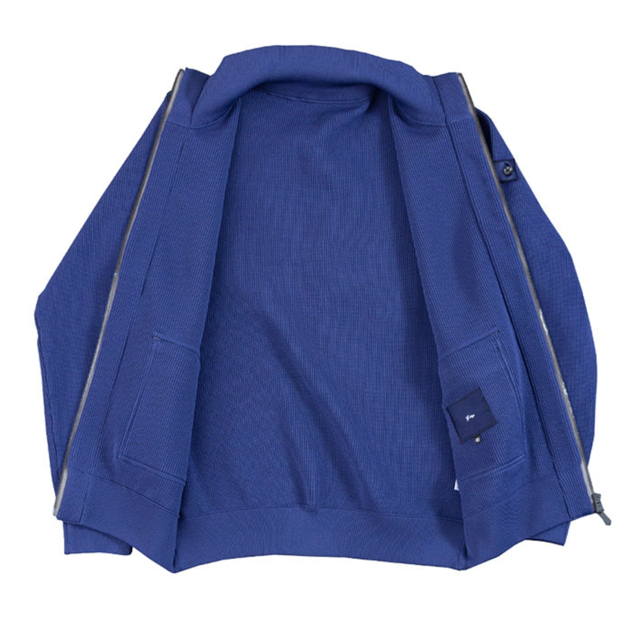 フラップボタン付のパッチポケットが表情溢れるスタンドカラージップアップブルゾン。